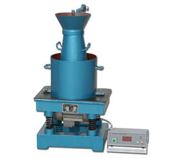 2、將喂料口提到坍落度筒上方扣緊,校正容器位置,使其軸線與喂料口軸線重合,然后擰緊蝶形螺母。